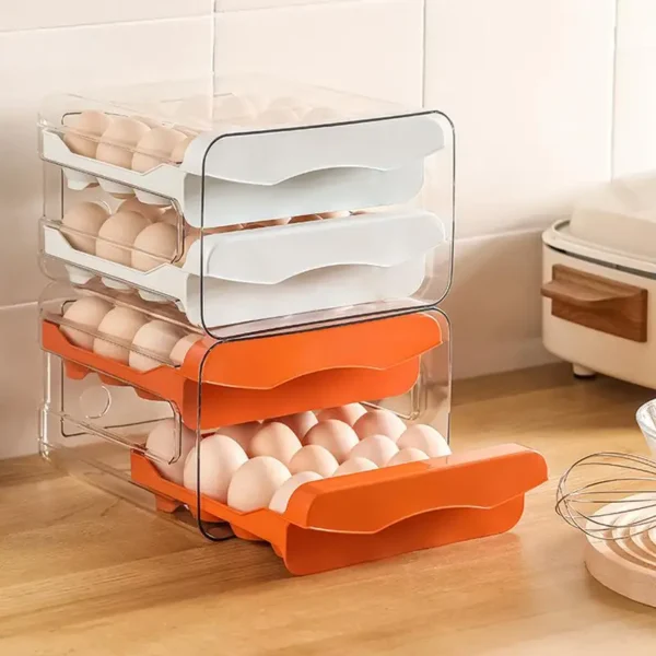 Egg trays in the fridge can quickly become messy and take up valuable space. This 2-layer storage rack helps keep eggs organised, protected, and easy to reach while making better use of your refrigerator storage area.